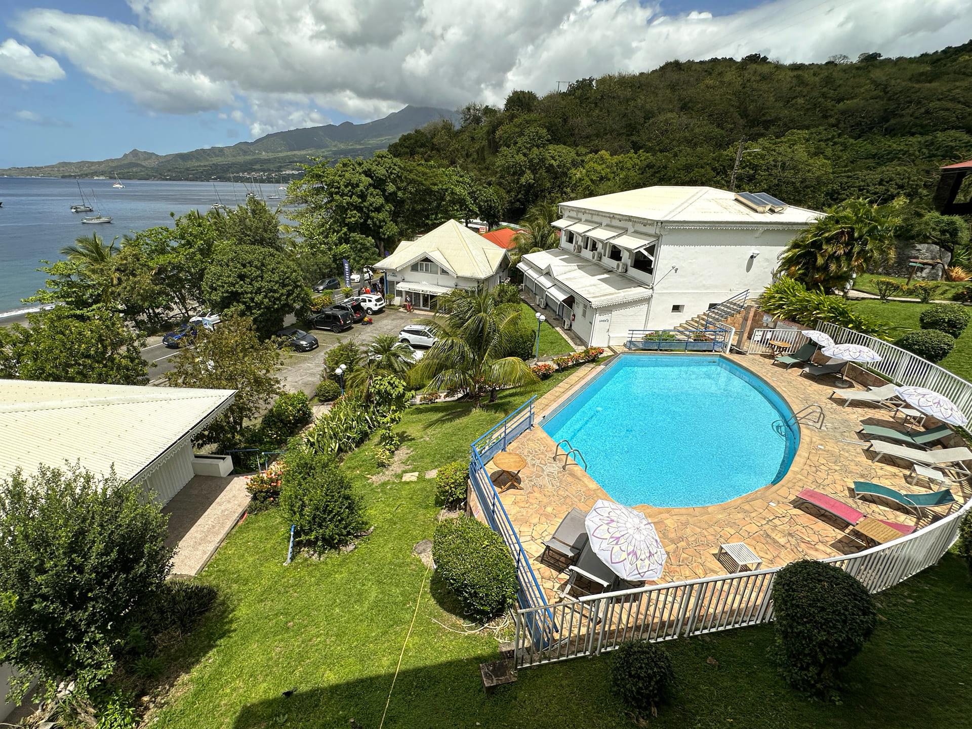 L’emplacement, au pied de la magnifique et imposante montagne Pelée, offre un accès direct à une petite plage très agréable.