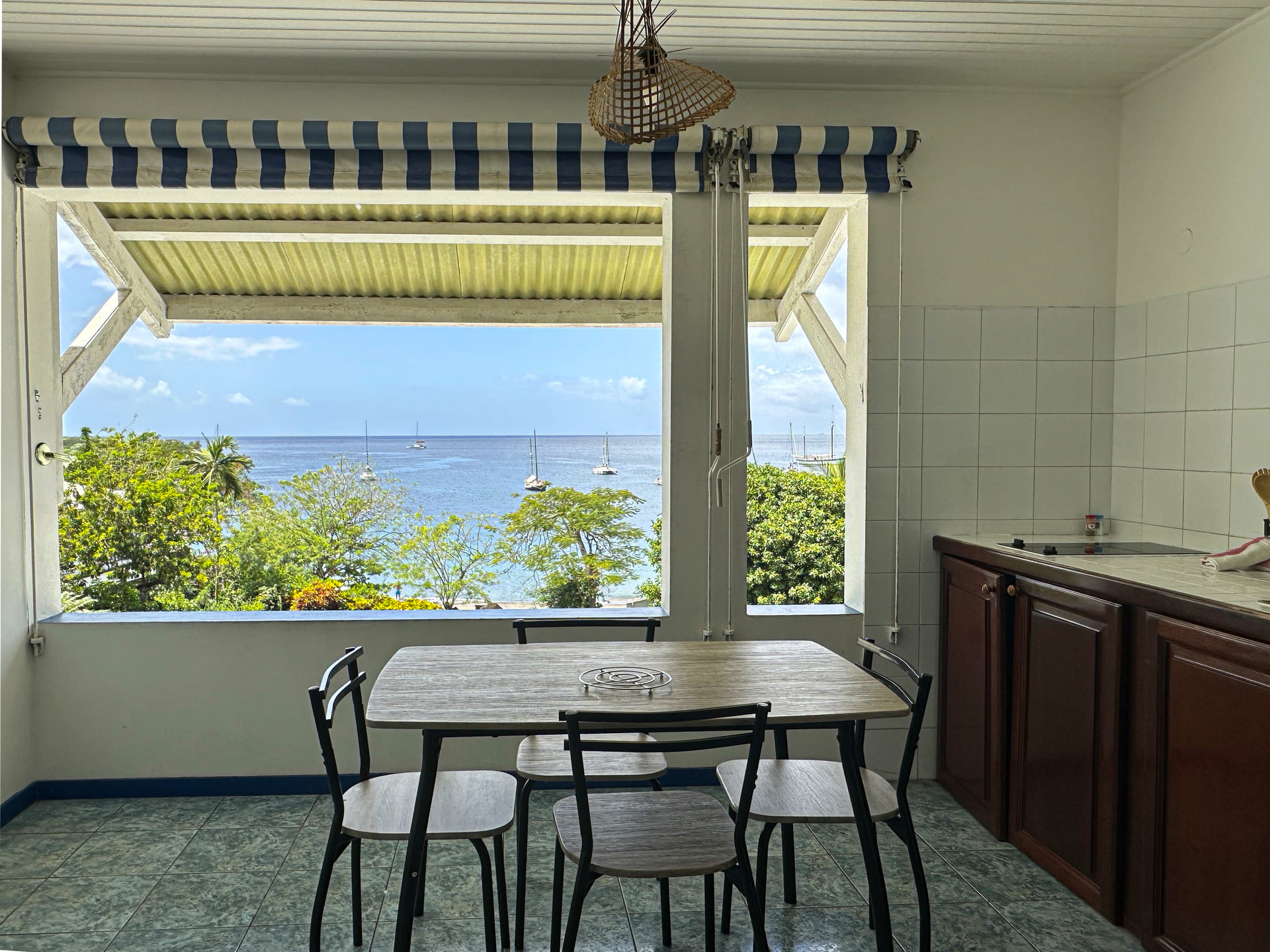 La résidence est située à l’Anse Latouche, sur les hauteurs du Carbet, avec vue directe sur la mer des Caraïbes et un accès immédiat (traversée de route) à une plage tranquille.